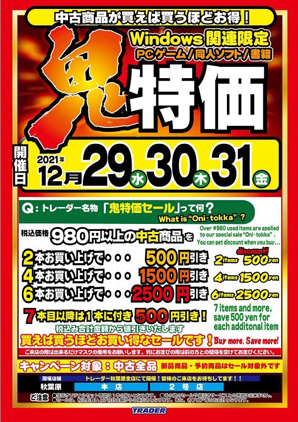 トレーダー名物の買えば買うほどお得な、鬼特価セールを開催します!