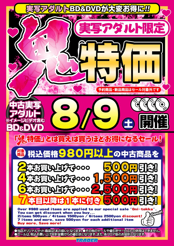 ・2025/8/9に実写アダルト限定鬼特価セール開催します!